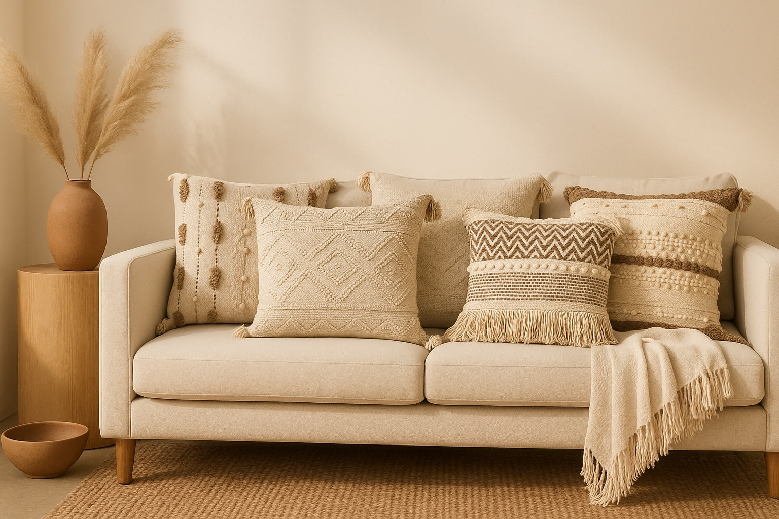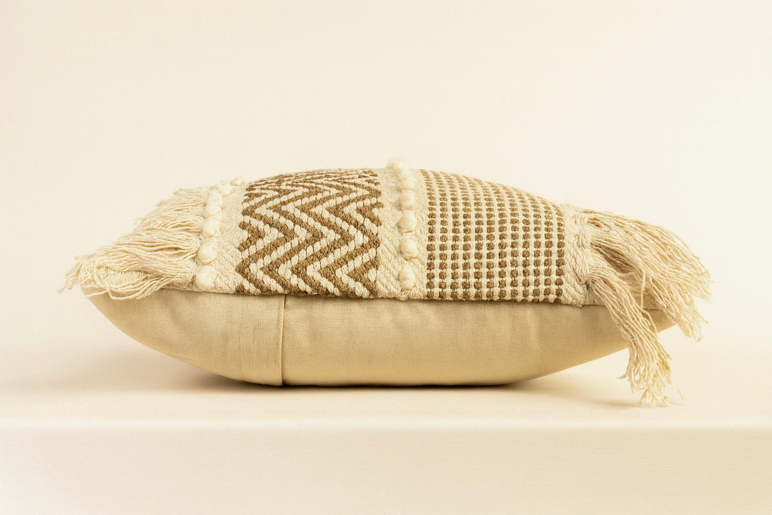 Boho Cushion Cover – Self Woven Pattern in Almond